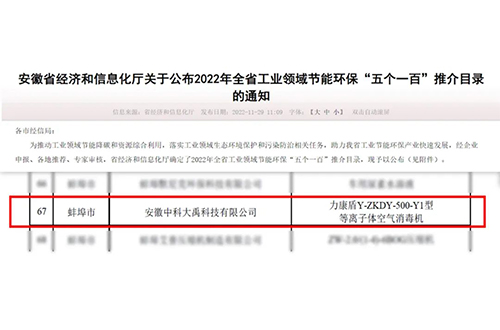 • 力康盾等離子體空氣消毒機成功入選節能環保新產品新裝備