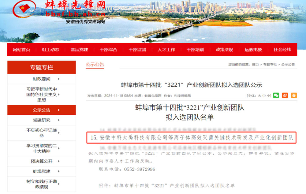 • 力康盾?ZKDY-G-180-P型等離子體空氣消毒機入選2024年度第三批安徽省首臺套重大技術裝備,評定等級:國內先進